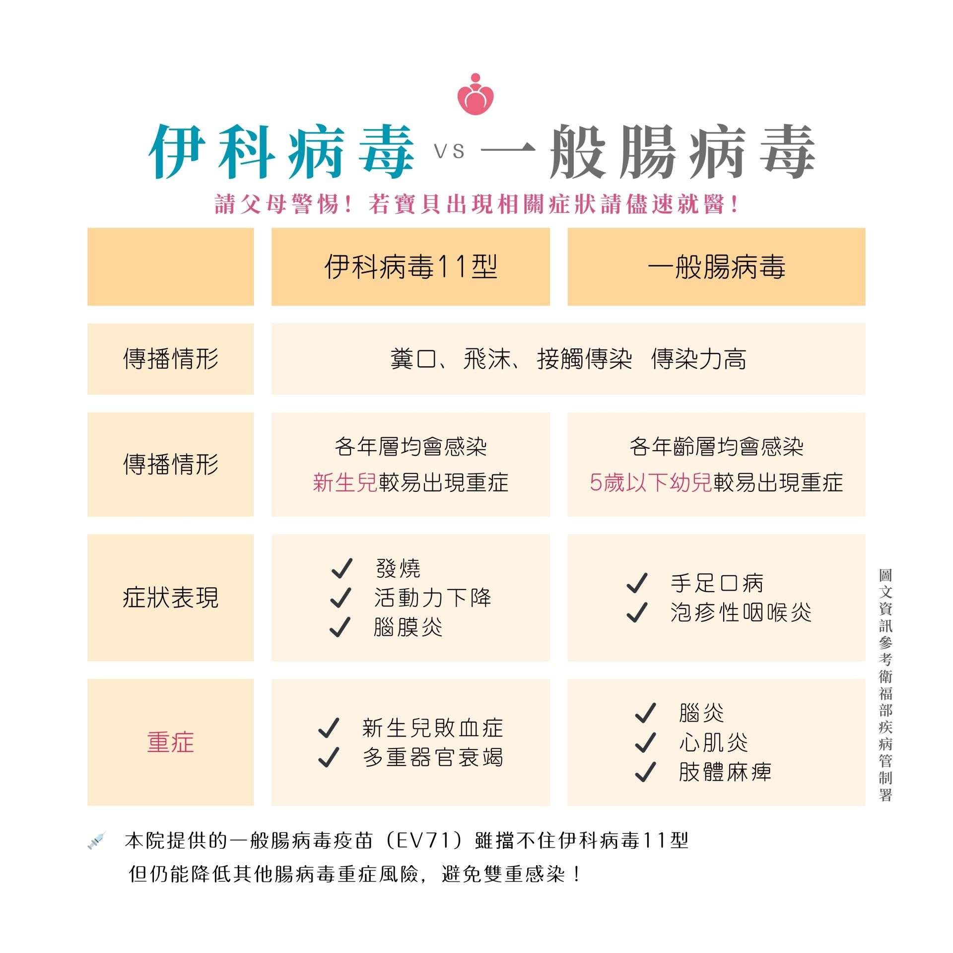本院提供的一般腸病毒疫苗(EV71)雖擋不住伊科病毒11型,但仍能降低其他腸病毒重症風險,避免雙重感染!!